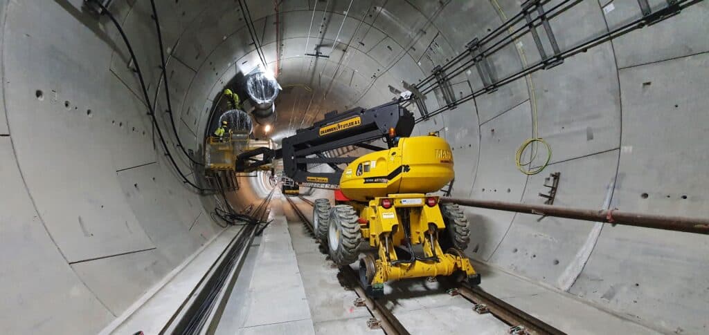 - Montering i tunnel: Installering av kameraer, skilt, fordelingskap, håndløpere, lys og andre nødvendige komponenter i tunnelen